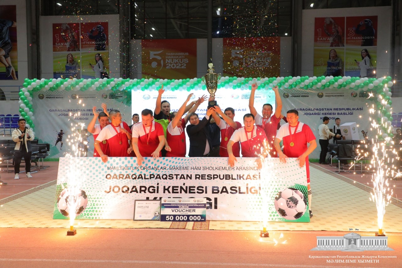 Соӊғы жылларда елимизде барлық тараўлар қатарында дене тәрбия ҳәм спортты раўажландырыўға, халықты, әсиресе, жасларды спортқа кеңнен тартыўға айрықша итибар қаратылып, бул бағдарда кеӊ көлемли илажлар әмелге асырылмақта. Сондай-ақ, мәмлекетлик уйымлар хызметкерлери арасында да саламат турмыс тәризин үгит-нәсиятлаў, спорт ойынларына оларды кеңнен тартыў илажлары даўам еттирилип, бул басламалар шеңберинде спорттың мини футбол түринен “Қарақалпақстан Республикасы Жоқарғы Кеңеси Баслығының кубогы” шөлкемлестирилген еди.