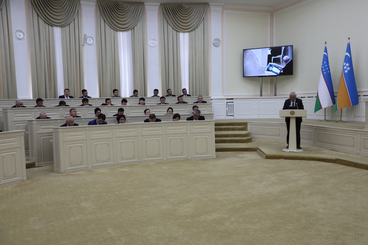 Сессияны Қарақалпақстан Республикасы Жоқарғы Кеңесиниң Баслығы М.Камалов кирис сөз бенен ашты ҳәм басқарып барды.